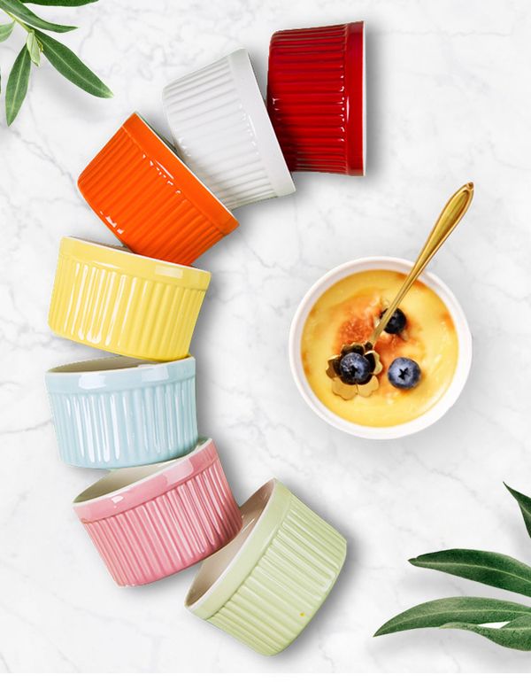 【4色組合】陶瓷烘焙烤碗|可烤可蒸可微波|甜品甜點/布丁/蛋塔蛋撻/梳芙厘舒芙蕾/啫喱/蛋糕/蒸蛋/沙律沙拉/寶寶嬰兒BB輔實/下午茶/小食/冰淇淋雪糕杯 廚房可入焗爐烤箱/微波爐/雪櫃冰箱容器 焗盤