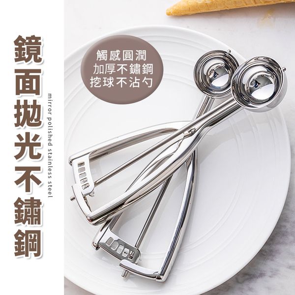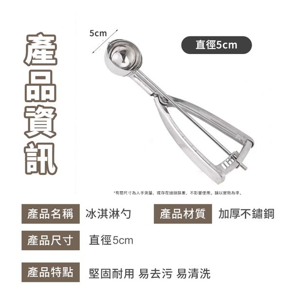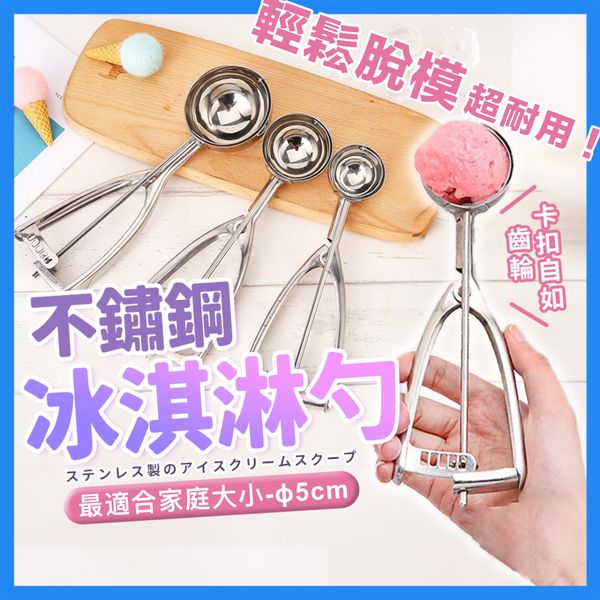【家庭用尺寸直徑5cm】專業級不鏽鋼雪糕挖勺|脫模輕鬆 易清潔鏡面拋光 耐用防滑手柄|冰淇淋湯匙匙羹 可回彈水果挖球器|夏日夏天必備家居廚房挖杓 甜品雪糕雪芭羹