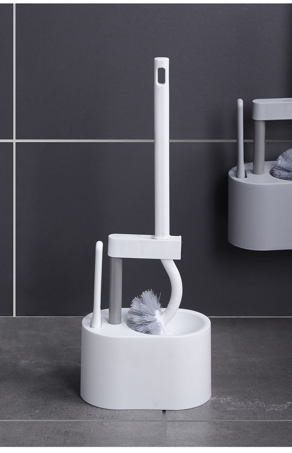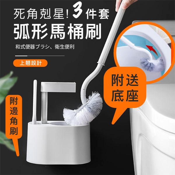 【死角剋星!3件套】弧形馬桶刷+邊角刷+底座|上翹刷頭 長柄深入隙縫清潔設計 日式軟硬毛馬桶清潔刷 無死角免打孔壁掛式廁所/浴室/洗手間家用家居刷子|附瀝水孔防霉防潮底座+邊角縫隙刷