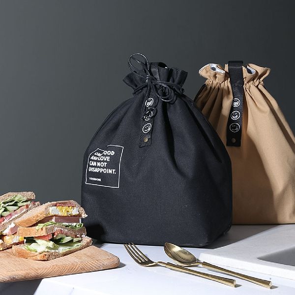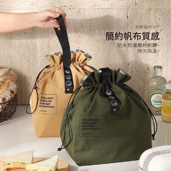 束口便當袋 束口餐袋 便當袋 保溫餐袋 簡約束口 餐袋 野餐包 小提袋 保冷袋 野餐袋 防水保溫袋 北歐簡約束口字母織帶保溫餐包(黃色)