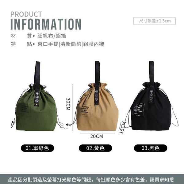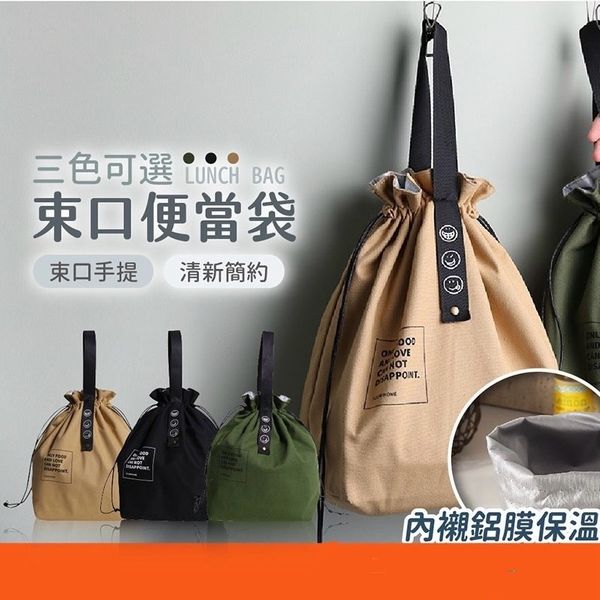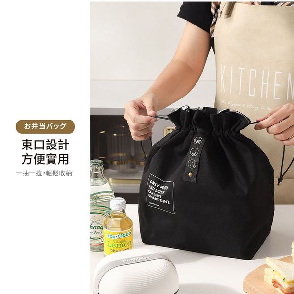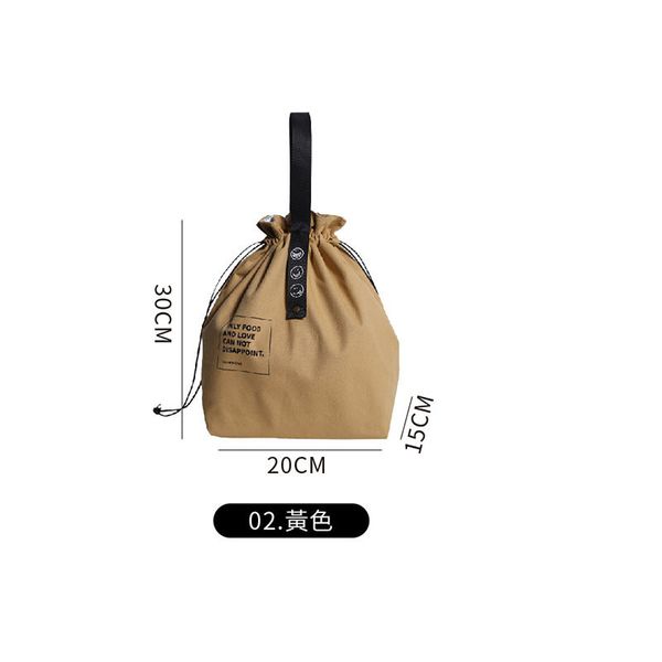 束口便當袋 束口餐袋 束口餐袋 野餐包 小提袋 保冷袋 野餐袋 防水保溫袋 束口字母織帶保溫餐包(黃色)