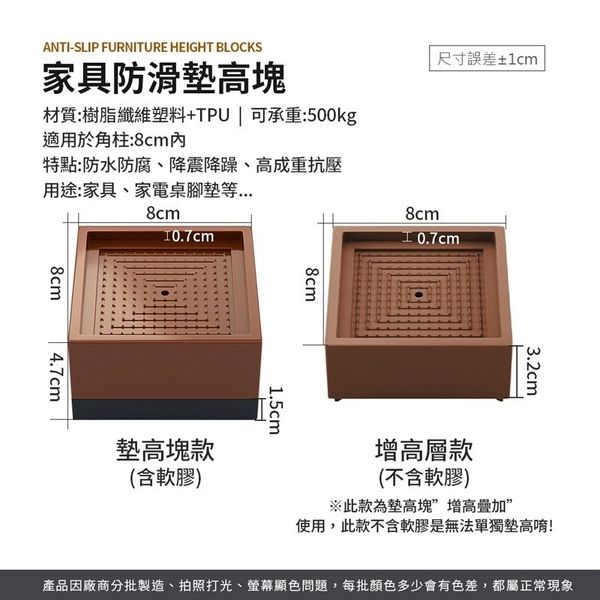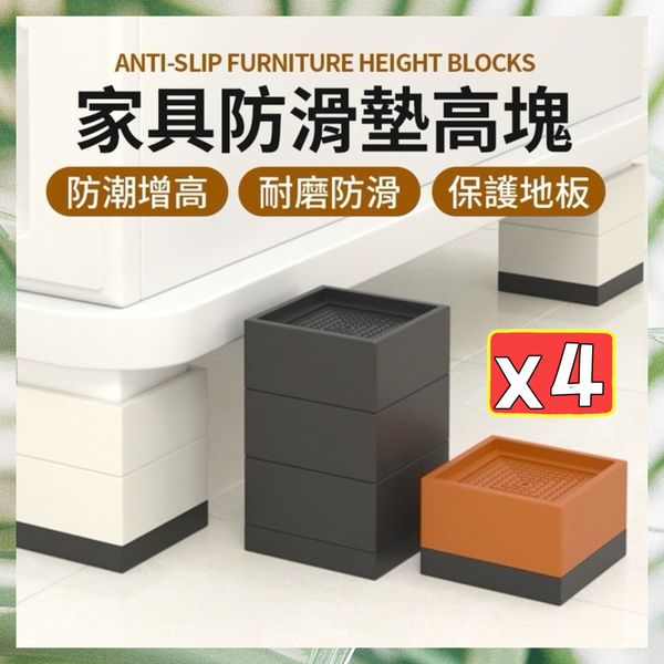 4個 家具防滑墊高塊 墊高塊 家具墊高塊 沙發增高塊 茶几增高墊 床腳墊 增高墊子 家具底座 防滑塊 床腳增高墊傢具腳墊(4個套裝)