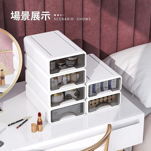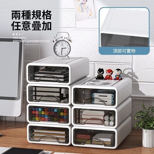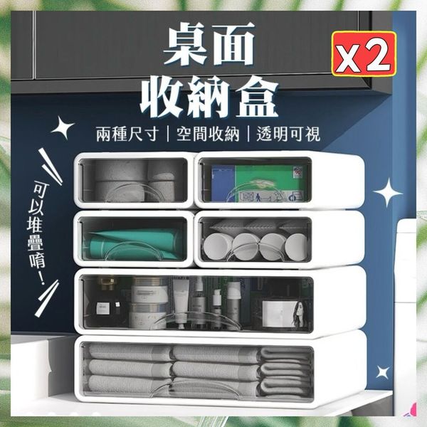 2個 無印風桌面收納盒 A4桌面收納盒 可堆疊收納盒 抽屜盒 抽屜收納盒 文具收納盒 口罩收納盒 置物盒 文具抽屜式儲物盒(小號/2個套裝)