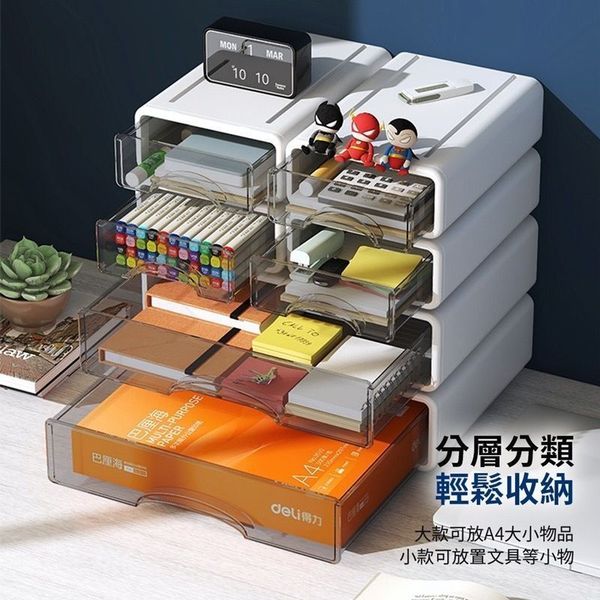 2個 無印風A4桌面收納盒 可堆疊收納盒 抽屜收納盒 文具收納盒 口罩收納盒 文具抽屜式儲物盒(小號/2個套裝)