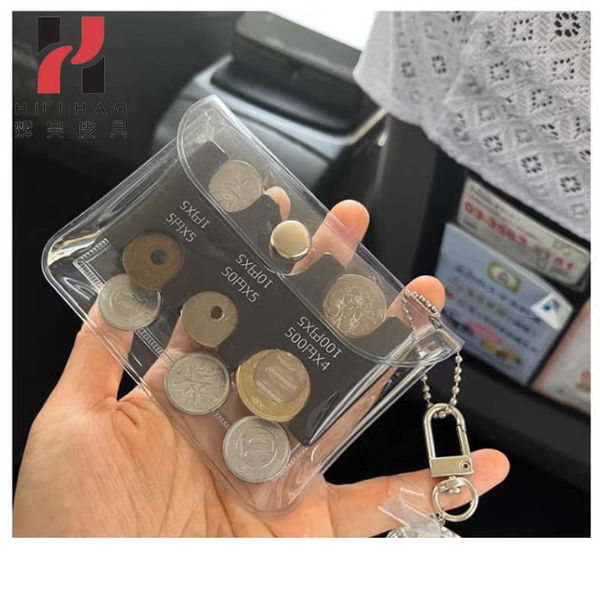 【遊日必備】日本硬幣分類包|內附卡扣 防零錢掉出|透明PVC塑膠收納散紙包 便攜輕便零錢包 日圓日円整理硬幣夾 旅行銀包 散銀包(黑色內膽款)