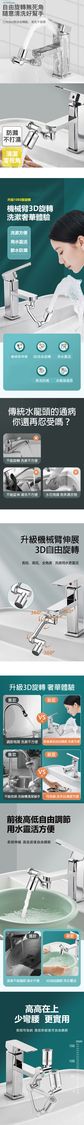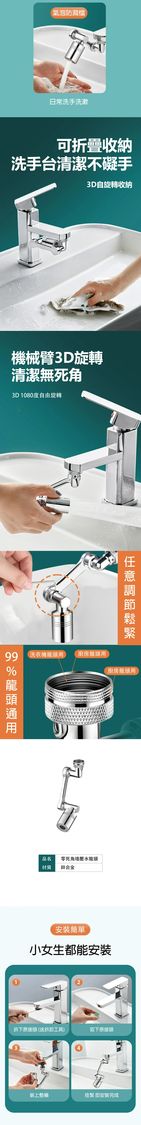 萬向水龍頭1080°可旋轉 合金水嘴|防濺節水 洗漱方便 前後高低自由調節 各類水龍頭適用 可收納|水龍頭機械手臂加長延伸器 廚房/廁所洗手間浴室衛浴防濺水嘴 盥洗起泡器 零死角浴室龍頭