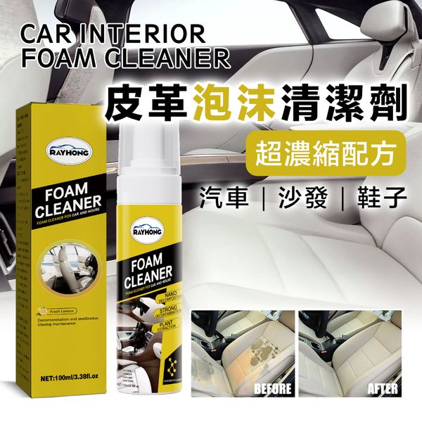 深層清潔翻新!RAYHONG 皮革泡沫清潔劑|汽車內裝+沙發梳化+鞋子白鞋去污保養 不傷皮革|車內清潔護理 車載座椅儀表板用 持久防塵上光滋潤泡泡 家用頑固污跡清潔劑