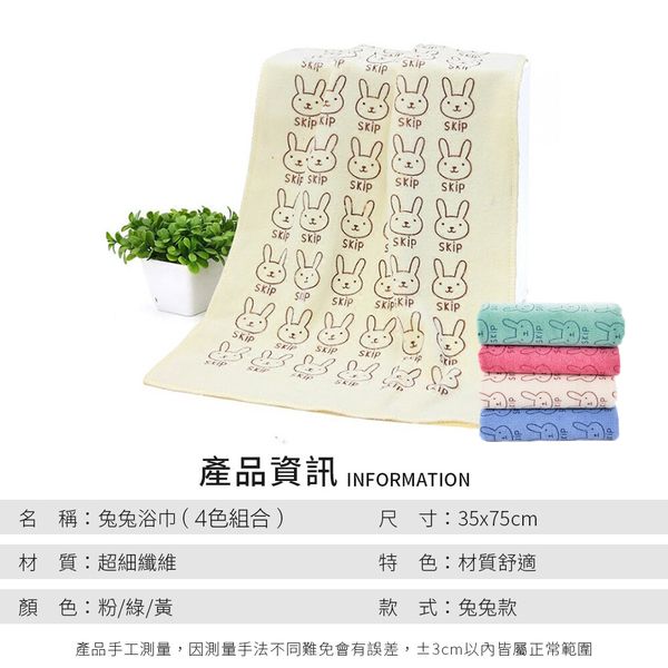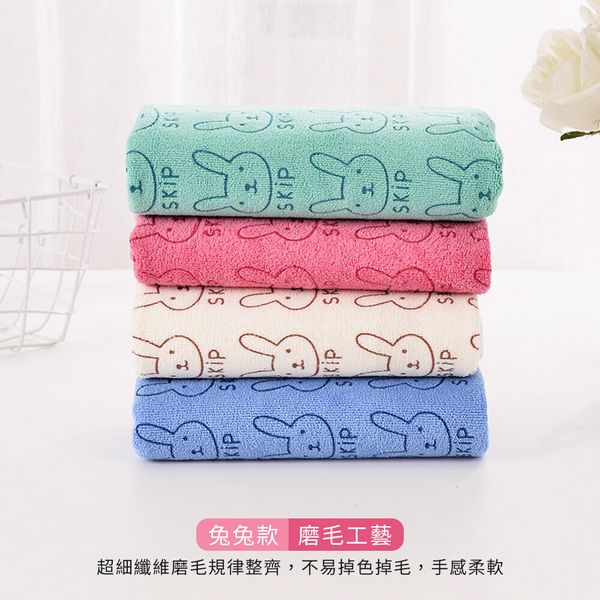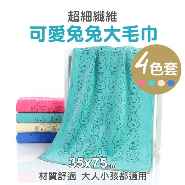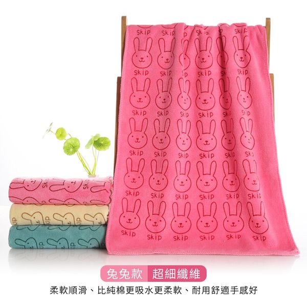 嚴選親膚面料!兔兔大毛巾(一套4色)吸水乾爽 超細纖維 精緻包邊 不易退色|成人兒童小朋友通用家庭裝 浴室廁所洗手間/游水游泳必備 柔軟卡通印花乾髮巾 擦髮巾 洗臉巾 沖涼洗澡清潔抹手擦拭用浴巾