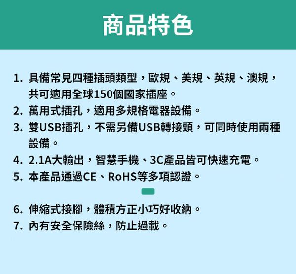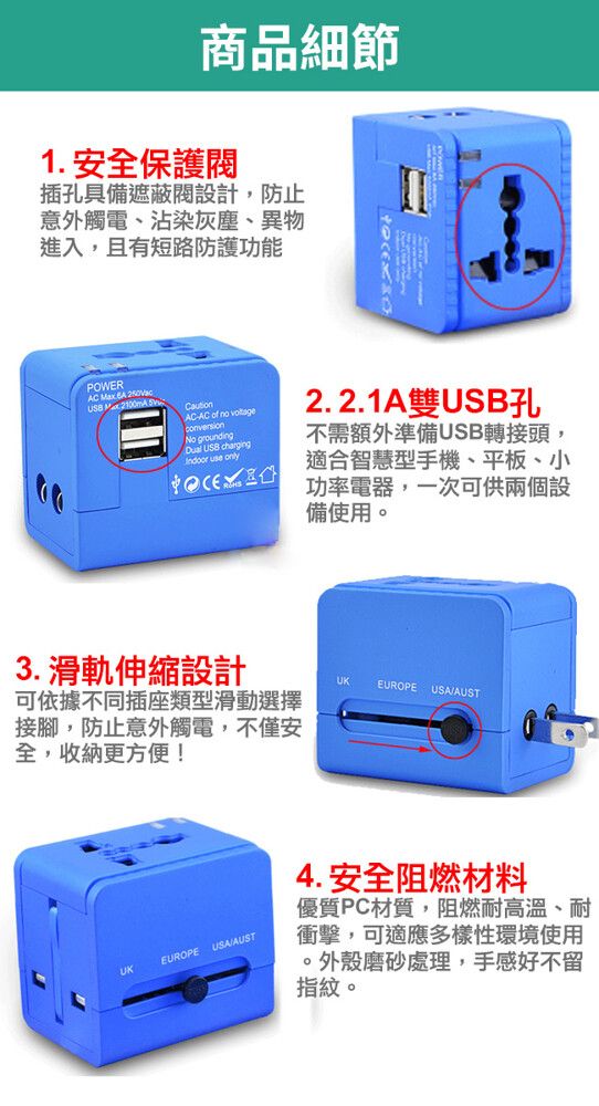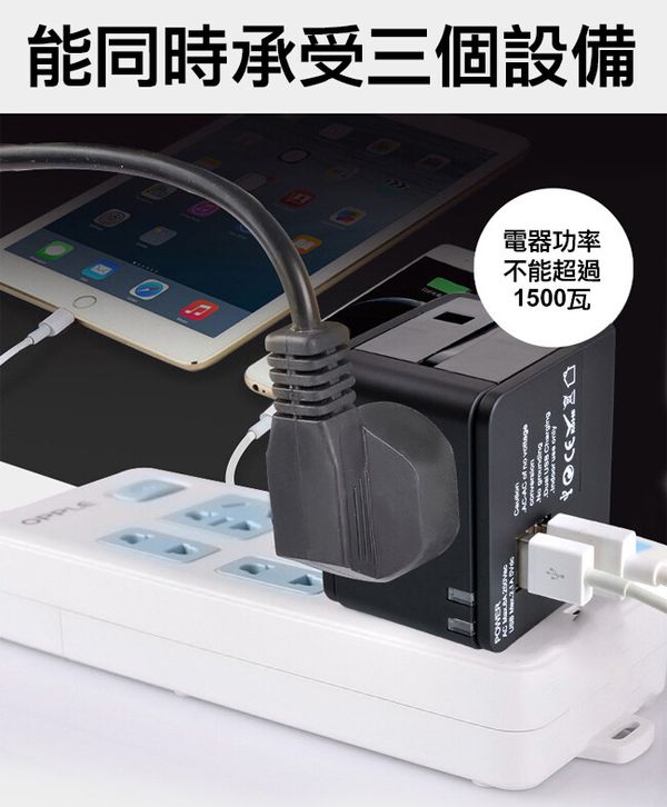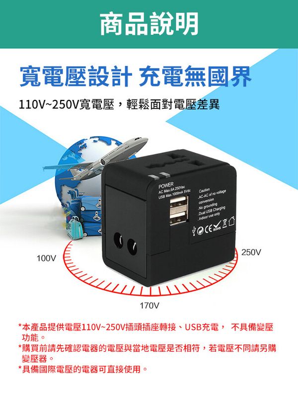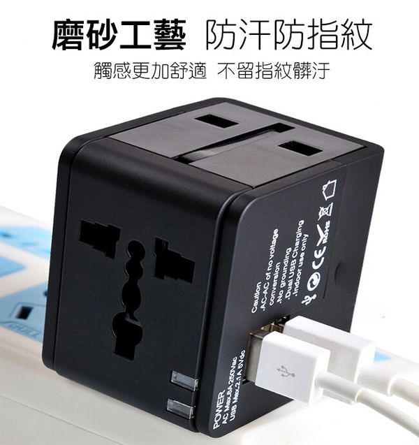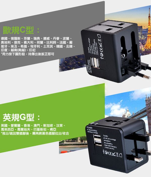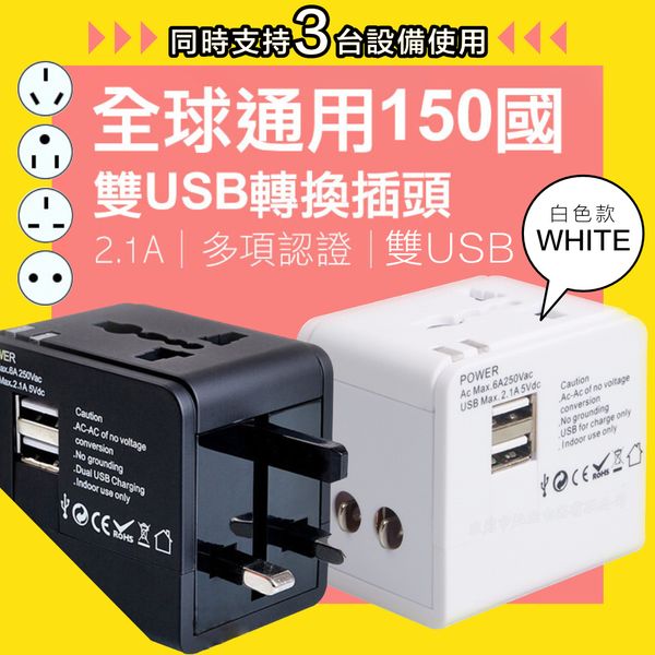 全球通用!雙USB萬用轉接頭|同時支援3個設備 短路防護 2.1A|旅行插座 英國/美國/日本/韓國/歐洲/澳洲/中國大陸/台灣/泰國|英/美/澳/歐規標 轉插Adaptor 萬用插頭 轉換插頭(白色