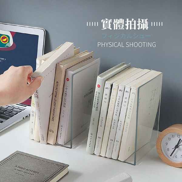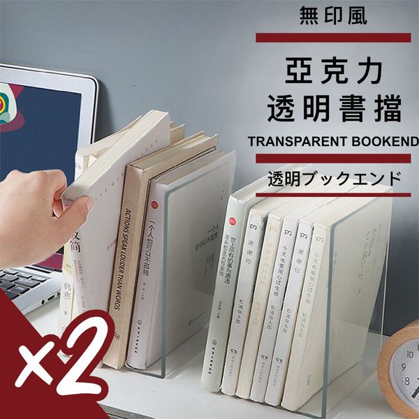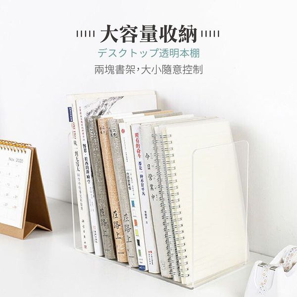 透明加厚!日系無印風亞克力書擋(2個)大容量收納 厚實耐用 快速整理|簡約桌面文件架 書立 L型壓克力書本陳列架 小朋友兒童學生用 書檯課本書擋板 辦公室Office上班族公司書夾資料收納架 分隔格