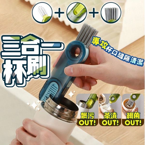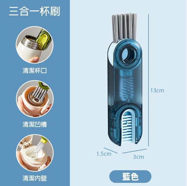 三合一杯刷 杯子清潔刷 縫隙刷 清潔刷 杯蓋刷 杯蓋清潔刷 保溫杯刷 杯刷 縫隙清潔刷 奶瓶刷 瓶刷 清潔刷 藍色