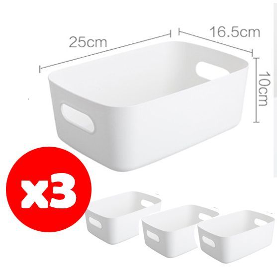 無印風 塑膠籃 收納盒 置物盒 收納籃 廚房收納 浴室收納 桌上收納 居家生活 白色【中號】3個一套