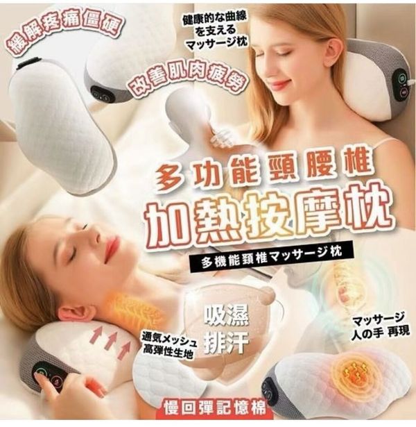 頸椎按摩枕多功能肩頸按摩儀加熱腰部靠枕背部電動家用頸椎按摩枕