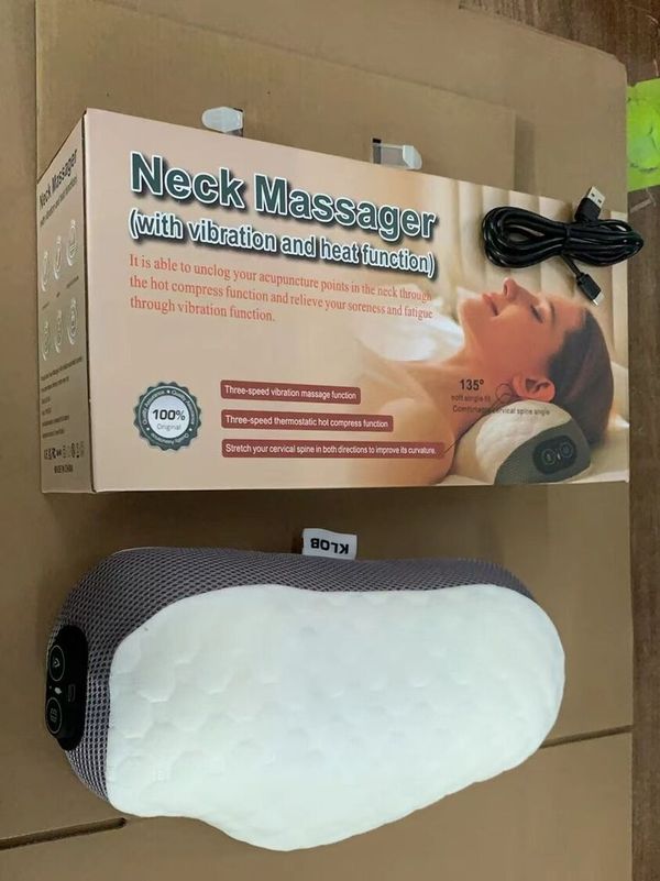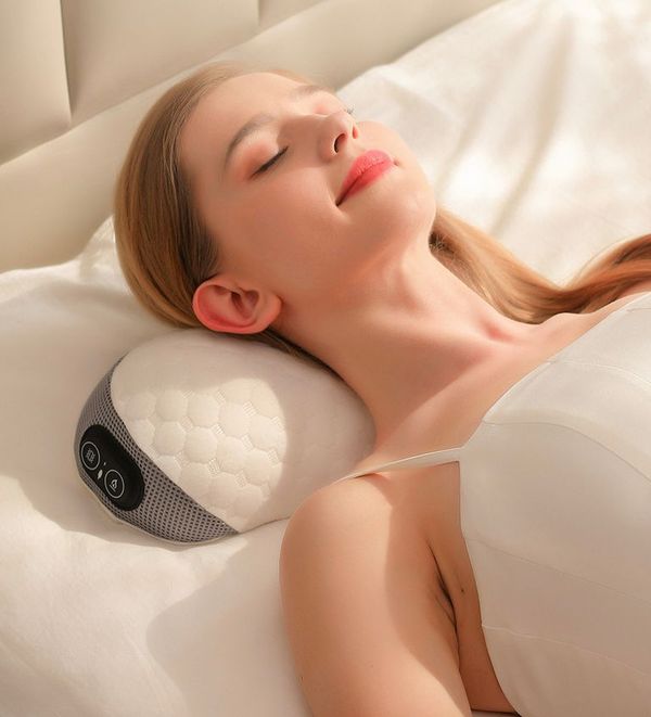 頸椎按摩枕多功能肩頸按摩儀加熱腰部靠枕背部電動家用頸椎按摩枕 白色