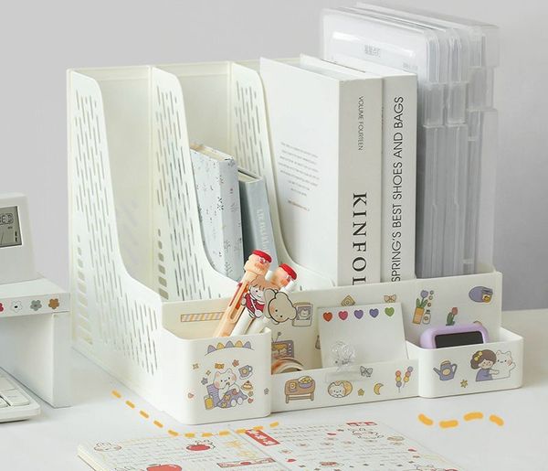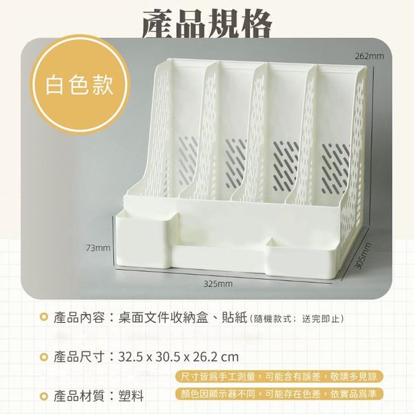 連筆筒!7格桌面文件整理盒(送限量隨機款式DIY貼紙)超大容量書擋|桌面雜物資料分類收納盒|辦公桌Office兒童小朋友學生書桌書檯文具文件收納夾 文件架 書立盒 書本書籍筆記本iPad置物架(白色)