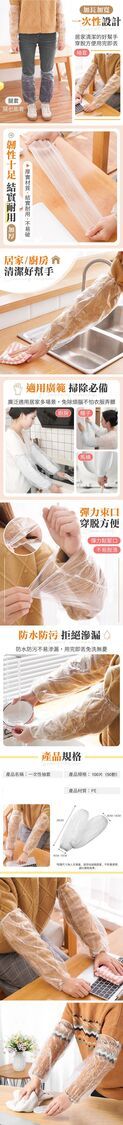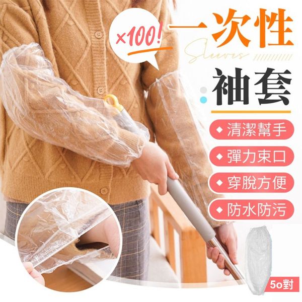 清潔好幫手!防水防污一次性袖套(100片)加厚結實 彈力束口 不易脫落 加長防護|男女通用 居家廚房主婦必備 大掃除洗碗清潔家務染髮繪畫畫畫美勞手工用 拋棄式防髒保護塑膠袖套 家居清潔工具(共50對)