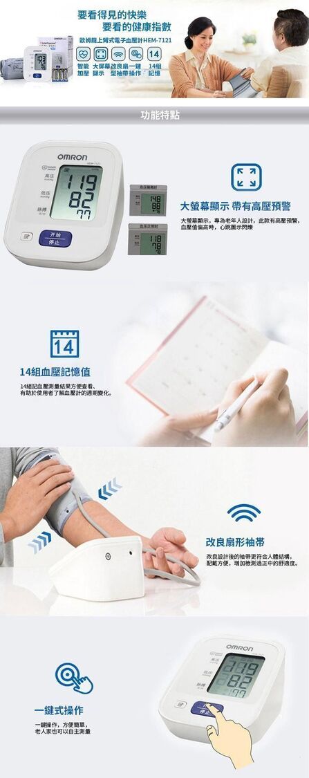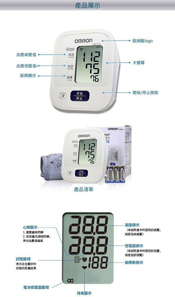 歐姆龍 HEM-7121電子血壓計 上臂式 老人長者血壓監測保健 送父母禮物 父親節 母親節 血壓計 手臂式 omron 血壓機 手臂式血壓計