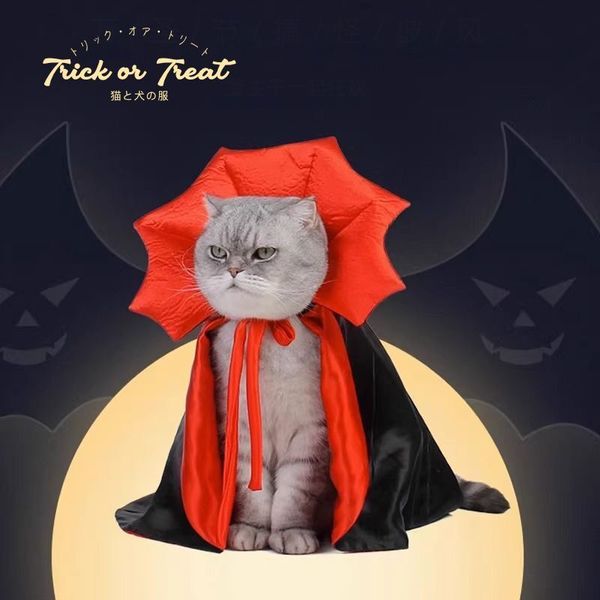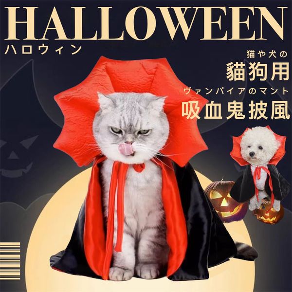 真·尖牙吸血鬼!寵物用吸血鬼Cosplay披風|中小型貓狗通用 綁帶設計 無束縛感|小狗犬貓咪家居外出出街散步用 可愛搗蛋驚嚇恐怖血族裝飾喇叭披風 可調節衣服 慶祝派對裝扮玩具 狗衫褲 服飾 寵物用品