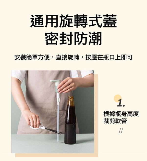 每次使用醬料時都無法掌握用量?快用完時,甩瓶甩的到處都是想好好用個醬料有那麼困難嗎?不要怕❗ 救星登場良品推薦👉✨【醬料用按壓嘴】✨超實用醬料用按壓嘴簡單組裝 讓使用醬料瓶都能變得輕鬆簡單卡構式設計 通用尺寸 大部分醬料瓶皆能安裝輕輕一壓就能無礙的享用美味讓美食再次為可口的醬料而昇華!包裝:2 頭套裝 (送軟管4支)