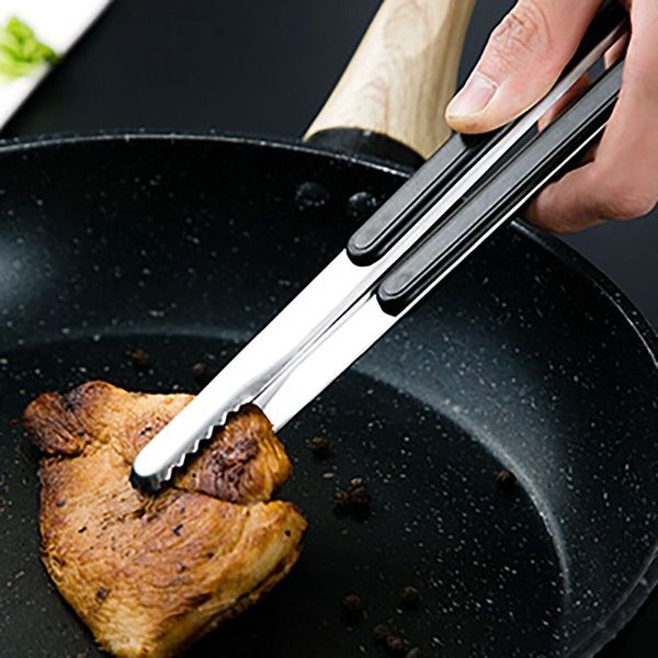 22.5cm加長廚房不銹鋼食品夾烤箱麵包夾子油炸防燙菜夾家用 焗爐夾 煎牛排 麵包bbq燒肉夾 冰夾 方糖夾 麻辣燙 蔬菜夾 燒烤油炸 冰夾及不銹鋼冰粒
