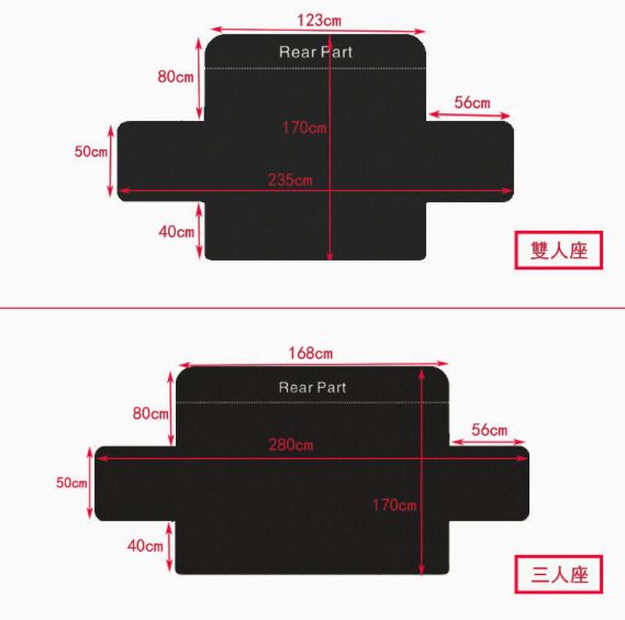 材質:絲棉 尺寸: 雙人:約170*235cm (不連兩則約123cm) 三人:約170*280cm (不連兩則約168cm) (為人工測量,有些許誤差屬正常) 防咬耐磨寵物沙發墊 易於放置和卸除,可機洗 A:雙人位 B:三人位