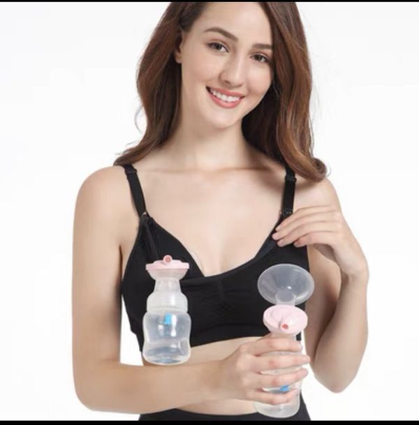 透氣舒適性感隱形免手扶免手提泵奶胸罩泵奶內衣泵奶胸圍黑色L