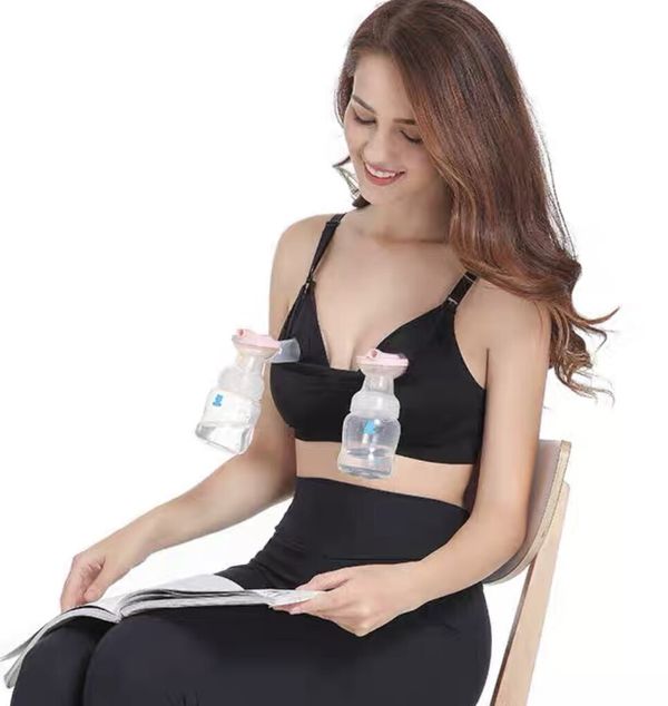 透氣舒適性感隱形免手扶免手提泵奶胸罩泵奶內衣泵奶胸圍黑色L 孕婦內衣 產檢褲