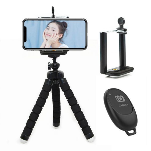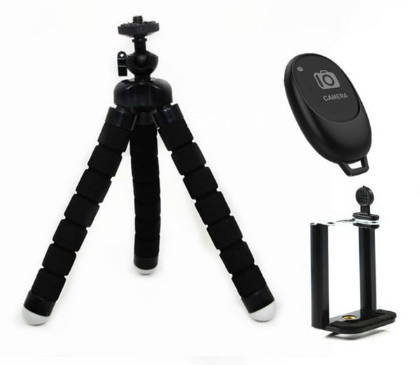 八爪魚海綿三腳架-三腳架(黑色)+夾子+遙控器 手機支架相機架八爪魚腳架