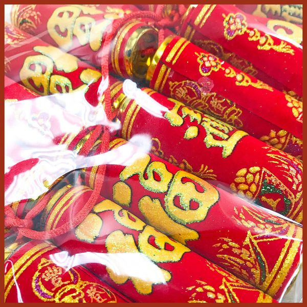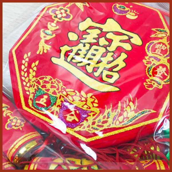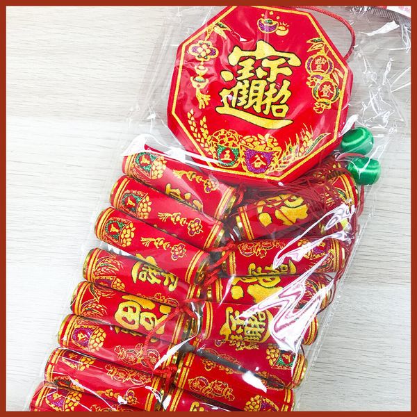 每副鞭炮獨立包裝,珠光金粉,珠光粉字體,紅色流蘇。