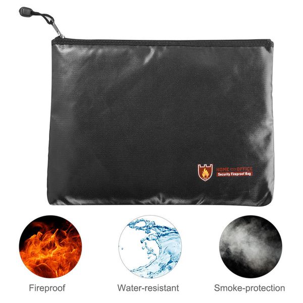 防火文件袋34 x 25cm 防水防火安全收納袋,附拉鍊,適用於 A4 文件收納、文件、現金、證書和平板電腦等