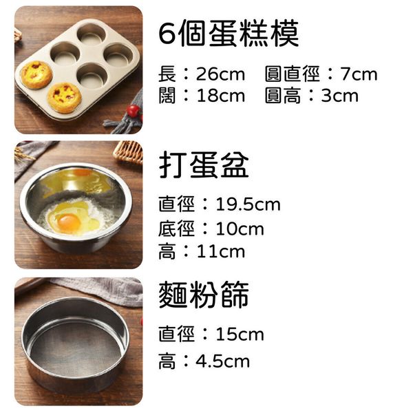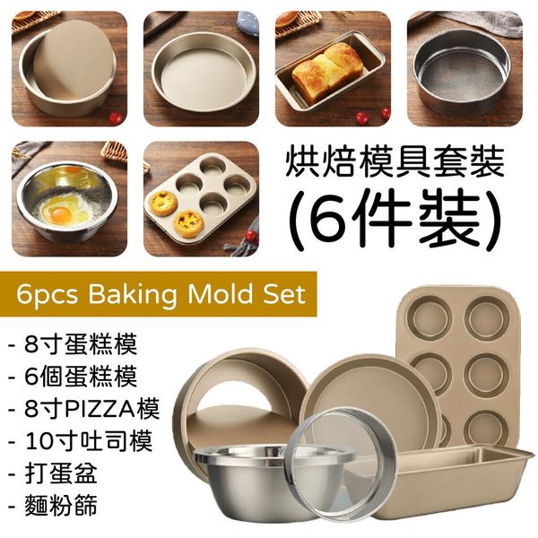 (6件裝)烘焙模具套裝 - 蛋糕模 PIZZA模 吐司模 打蛋盆 麵粉篩
