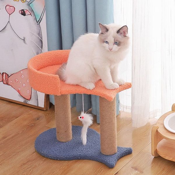 貓抓柱 - 貓窩台魚貓樹 優質柔軟絨毛貓塔 貓爬架 刮板貓家 貓窩玩具 兩層跳台貓窩,貓樹屋可以多處玩耍的睡眠磨爪貓居 貓跳台