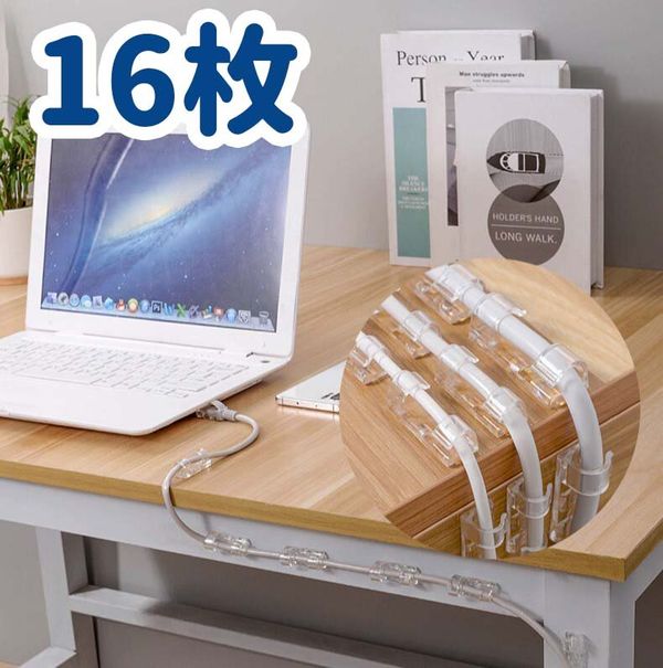 16枚 大號透明黏貼式電線夾 充電線理線固定器 黏膠電線固定夾 網線整理收納夾
