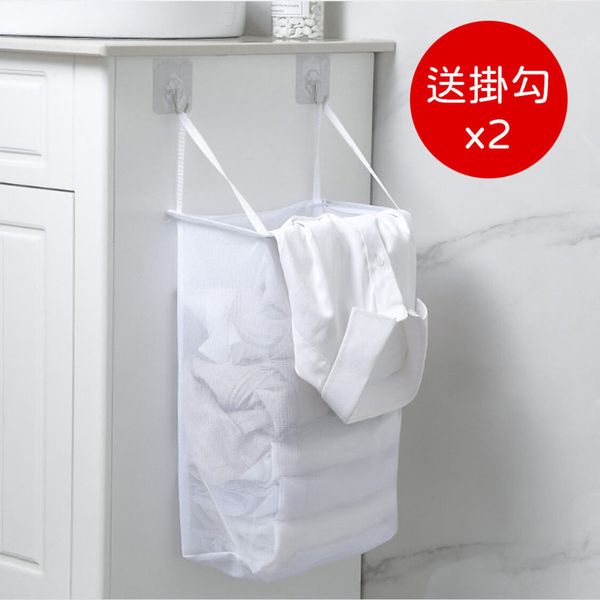 日式白色壁掛洗衣籃 無印簡約日系髒衣籃衛生間粘貼式污衣服收納籃浴室簡約洗衣籃髒衣簍洗手間用品 洗衣袋