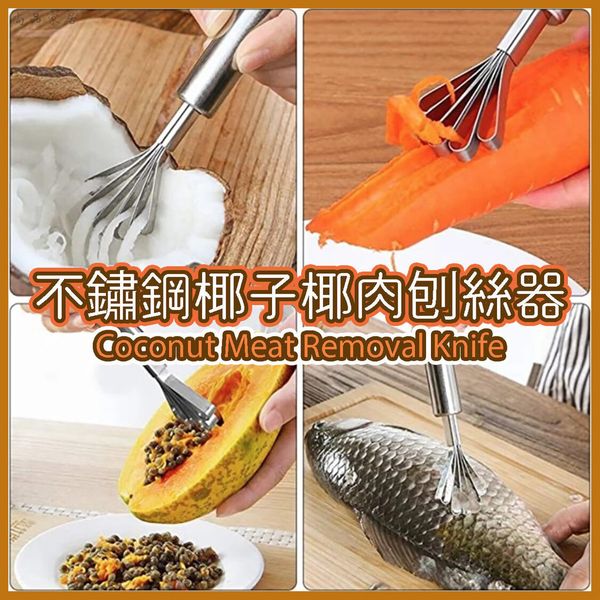 不鏽鋼椰子椰肉刨絲器 刨刀 椰肉刨刀 去籽 不鏽鋼刨 椰子刮肉器 椰肉 魚鱗刨 廚房 刨椰子 果肉分離器 去心挖子器 椰子刨 椰肉刨不銹鋼刮肉刮魚鱗 水果挖