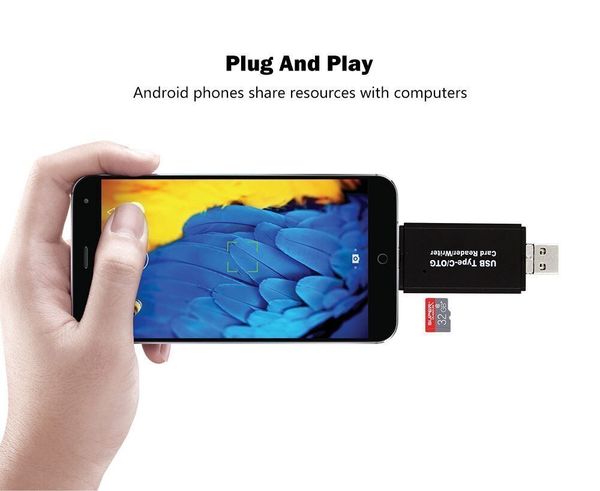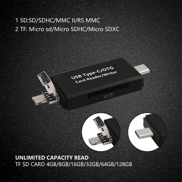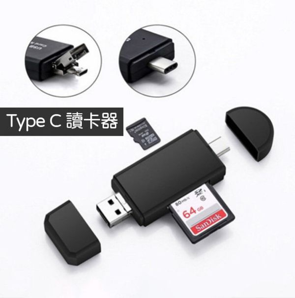 Type C 讀卡三合一 手機平板電腦 USB Type-C Micro USB 三合一讀卡器 OTG存儲卡適配器 適用於SD Micro SD TF卡 3.0 擴充神器 便攜 三合一讀卡器3 in