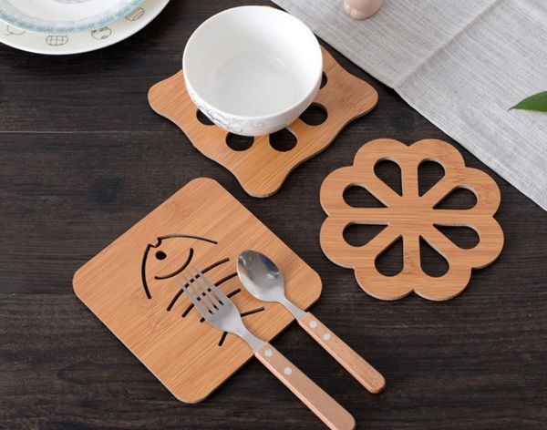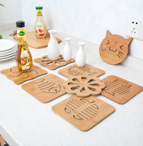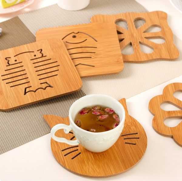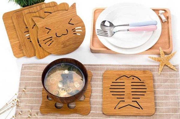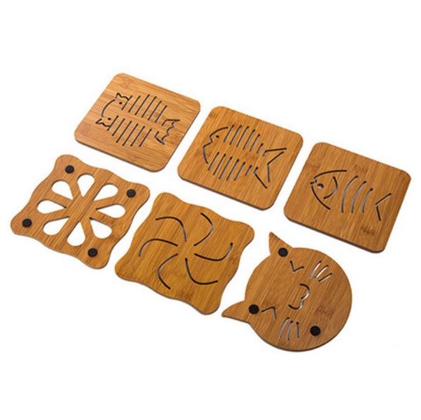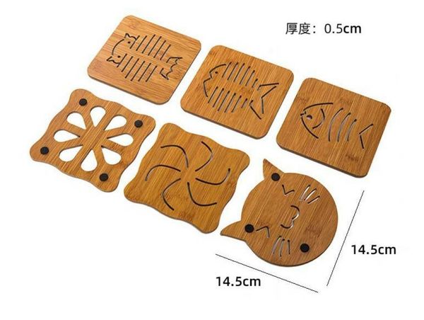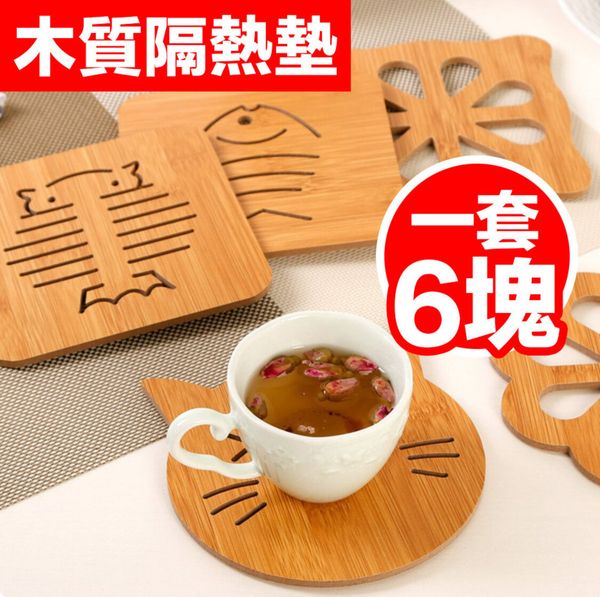一套6塊 木質杯墊大號創意鏤空餐墊餐具加厚隔熱墊防滑鍋碗盤墊貓貓 杯墊