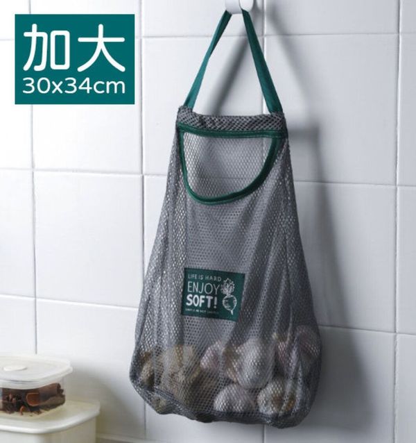 加大廚房薑蒜洋蔥收納掛袋 家用整理簡潔 蔬果保存新鮮透氣網袋 掛勺 環保 無印家居系列 廚房薑蒜洋蔥鏤空透氣收納掛袋網布袋 30x34 家用小物手提網格袋 收納網袋 浴室廚房 雜 多用途袋