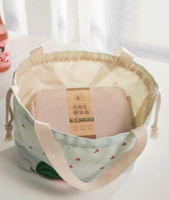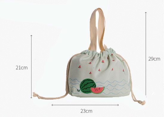日式西瓜飯盒袋女時尚手提袋子大號大容量保溫袋便當包便當袋束口 lunch bag