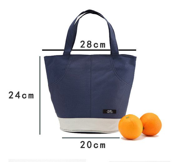 飯盒保溫袋子飯盒手提包便當帶飯鋁箔加厚手拎袋上班族外出媽咪餐包-藏青色 深藍白色