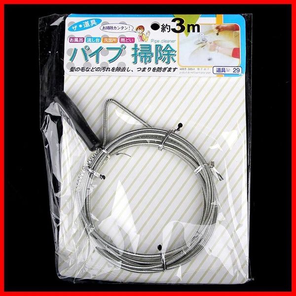 排水管通渠器-3米長 勾頭髮 水槽疏通器 通渠 手搖式鋼絲通下水道鉤鋼絲管 鋼絲彈簧通下水道清潔鉤 廚房堵塞疏通器 流理臺 彈弓通渠器