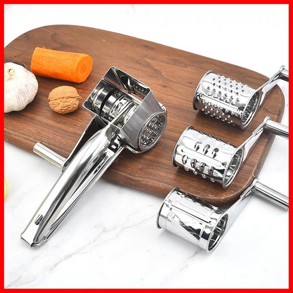 手搖芝士刨 不銹鋼旋轉刨絲切片磨粉器 不鏽鋼切絲器 省力手搖芝士刨刀 多功能乳酪刨 薑絲刨 擦絲器 多功能切絲器