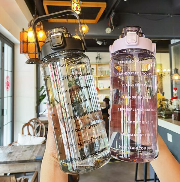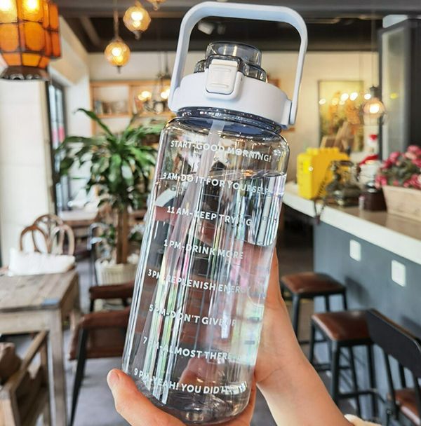 運動水樽 (2000ml) 超大容量 便攜運動戶外跑步健身水壺吸管杯- 藍色 大水樽