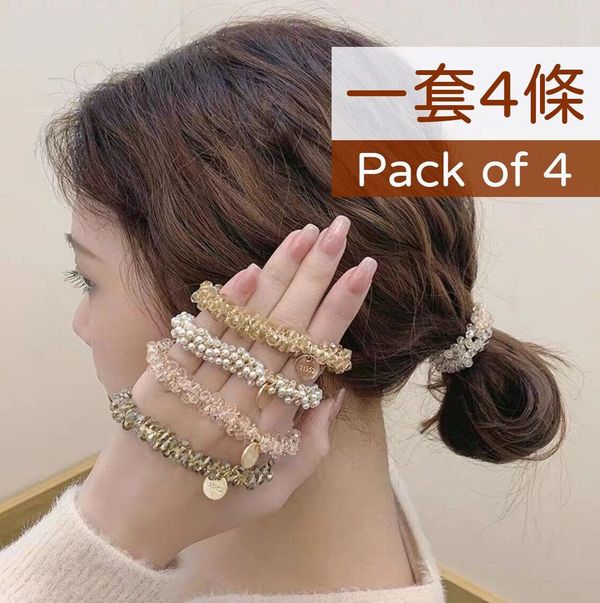 4條裝包括: 白色水晶髮圈 灰色水晶髮圈 香檳色水晶髮圈 粉色水晶髮圈