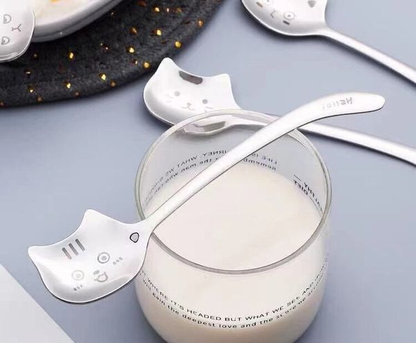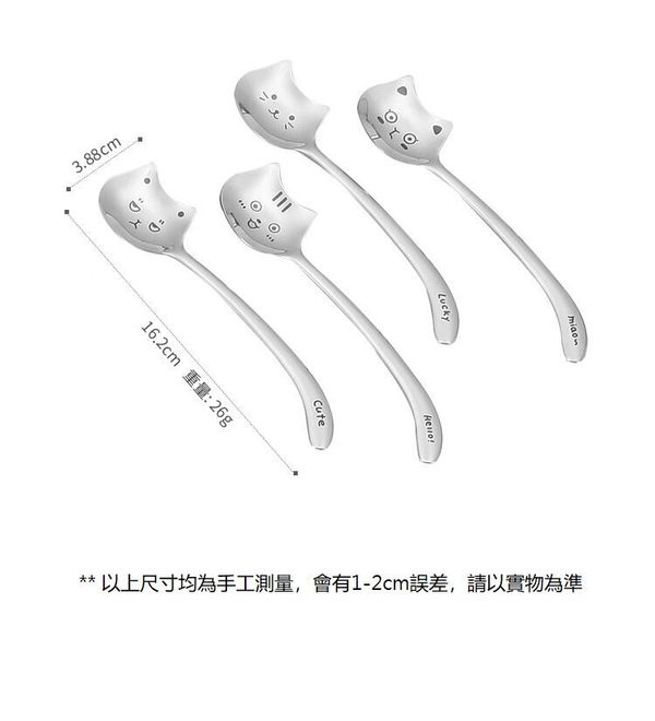 (一套4款) 304不鏽鋼可愛貓咪造型匙羹 雪糕匙羹 甜品匙羹 蛋糕 甜品勺 咖啡攪拌羹 喵星人 匙羹
