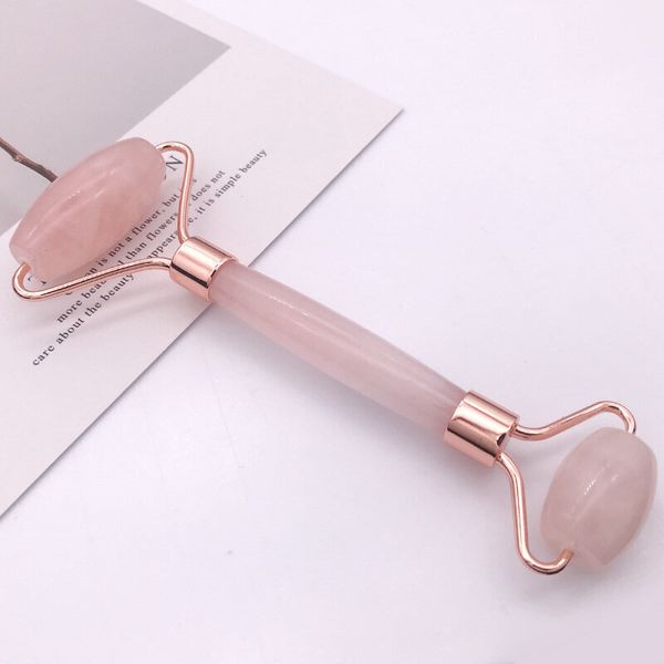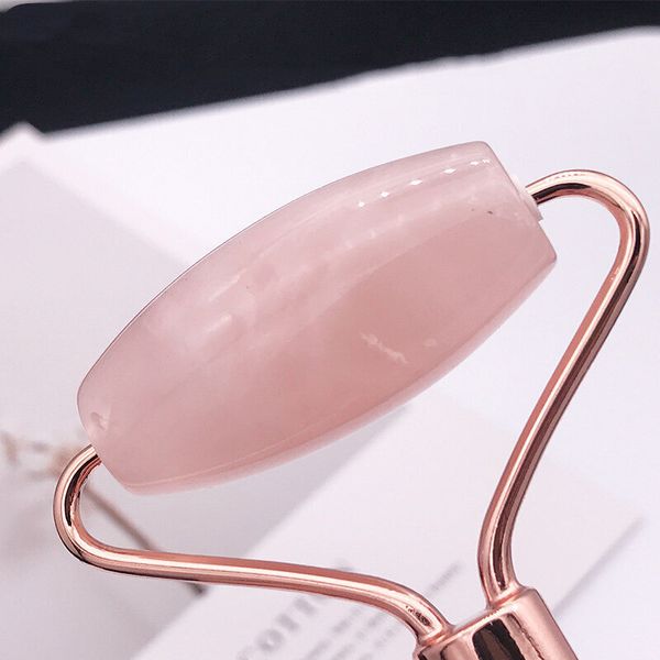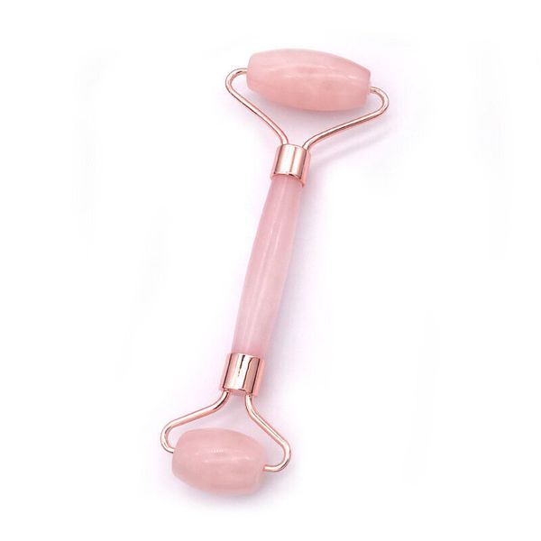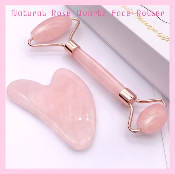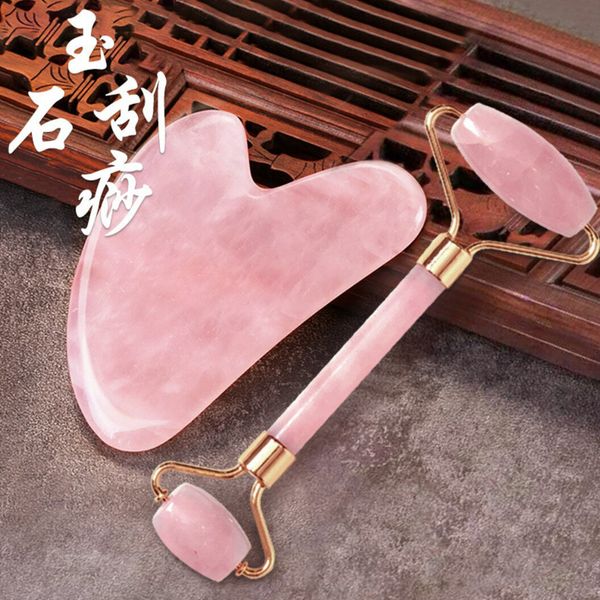 粉晶滾輪玉石臉部按摩刮痧套裝玉推美容儀器 天然粉水晶美容按摩瘦面套裝(包括玉石滾輪及刮痧板) | 櫻花粉配玫瑰金色 | 美容儀 玉石滾輪刮痧按摩工具套裝 養生經絡保健套裝 抗衰老皺紋面部按摩器 清除毒
