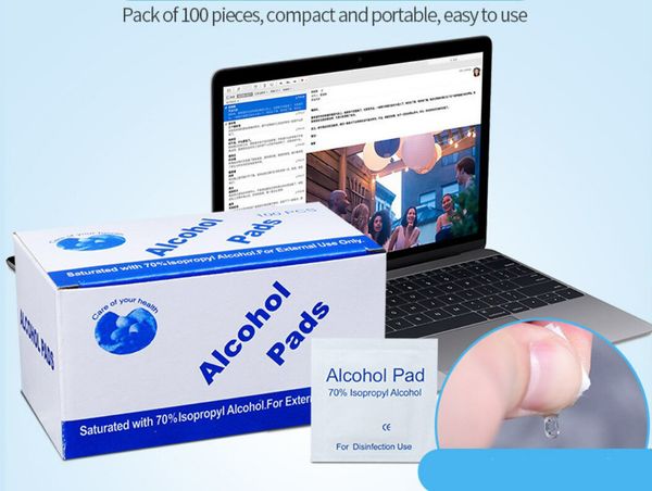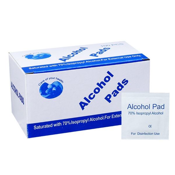 100片酒精消毒濕紙巾 (每盒100片, 共1盒) 消毒棉片,消毒濕巾,消毒酒精紙 70%酒精消毒濕紙巾 酒精濕紙巾70%乙醇 6cm x 3cm (100片獨立包裝/盒) 消毒濕巾 抹電話 火酒紙