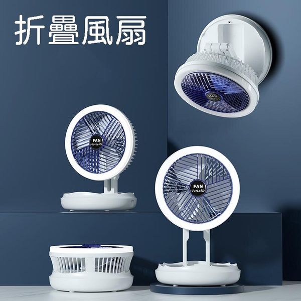 桌面多功能折疊風扇可收納小夜燈寢室小風扇可壁掛充電旋轉吊扇