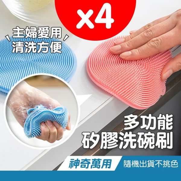 多功能矽膠洗碗布不沾油廚房專用洗鍋刷洗碗神器百潔布洗鍋刷抹布 4塊顏色隨機