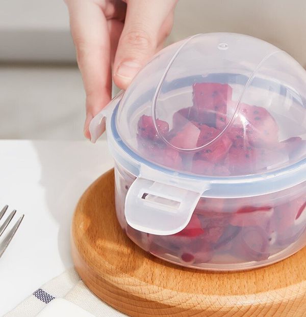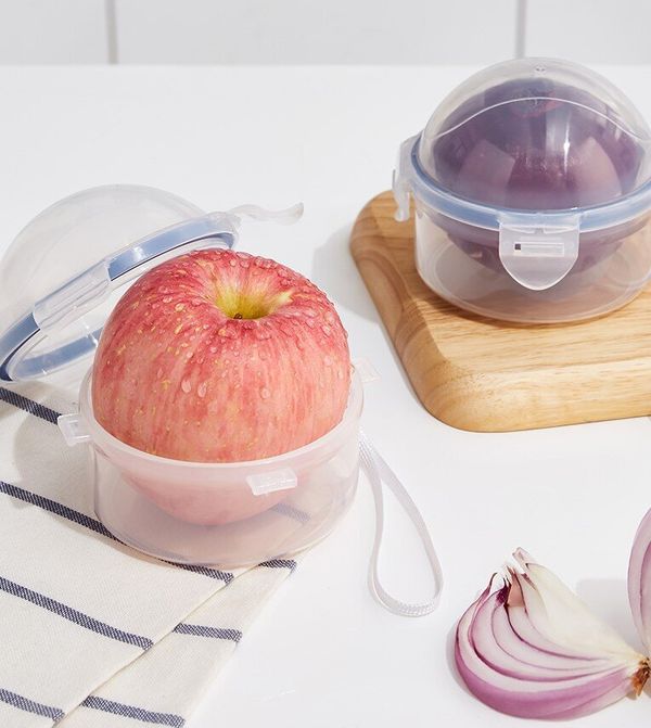 2個 水果密實盒保鮮盒蘋果收納盒家用圓形帶蓋密封盒洋蔥盒微波爐加熱米飯盒 食物儲存容器 保鮮盒
